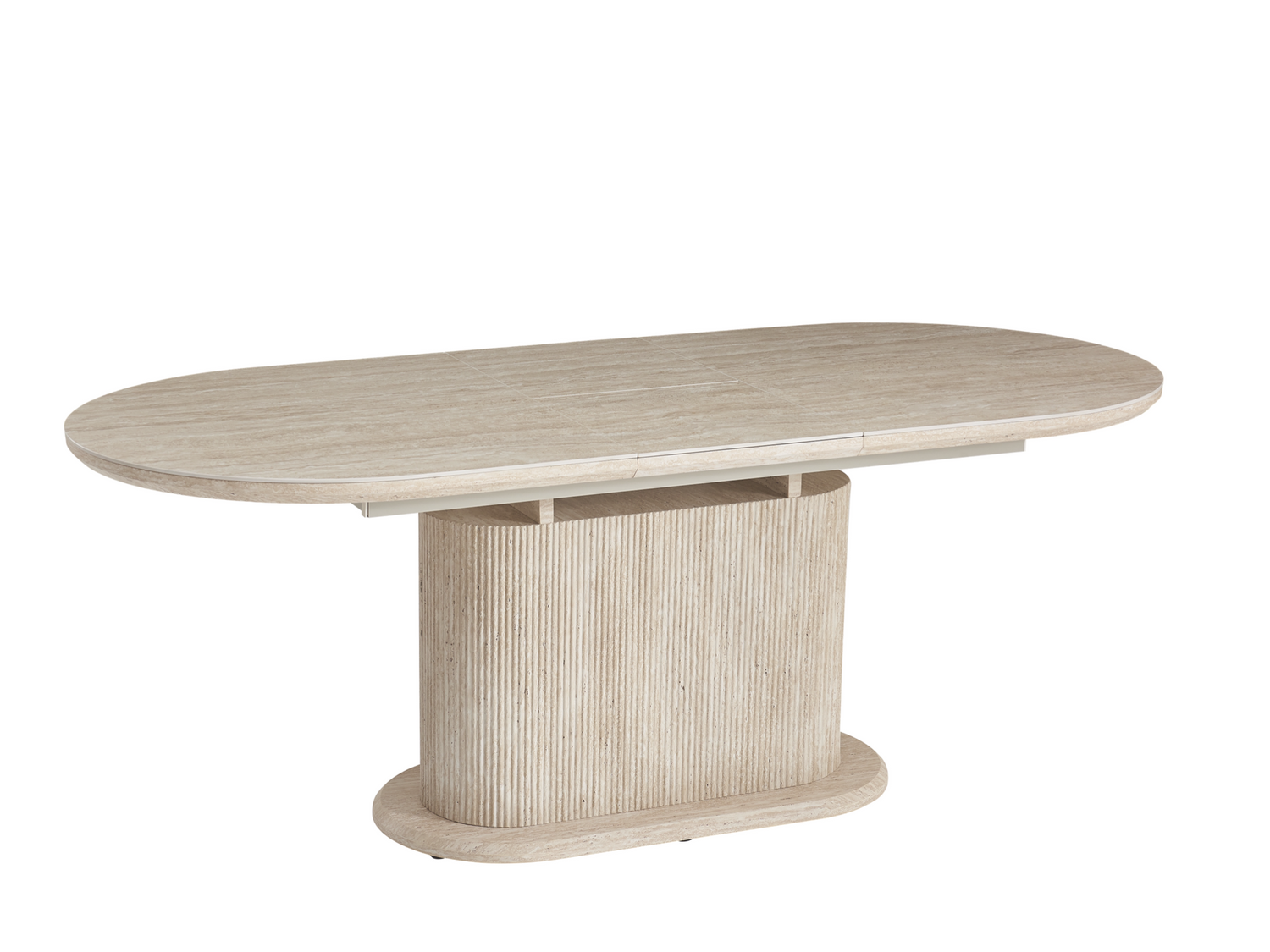 - Effet Travertin : piétement effet travertin + plateau céramique travertin