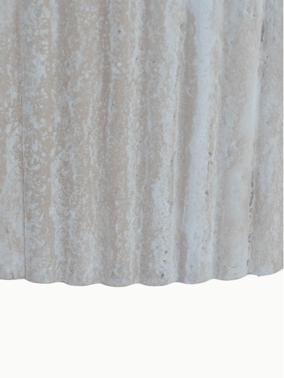 La table à manger Pillard séduit par son design à la fois simple et raffiné. Son plateau rond de 120 cm, associé à un pied central cannelé, rappelle les lignes des colonnes architecturales. Réalisée en bois MDF style travertin, elle offre l’apparence naturelle de la pierre tout en restant légère et facile à vivre. Parfaite pour une cuisine ou une salle à manger au style moderne et classe, elle devient rapidement le cœur de vos repas en toute convivialité.